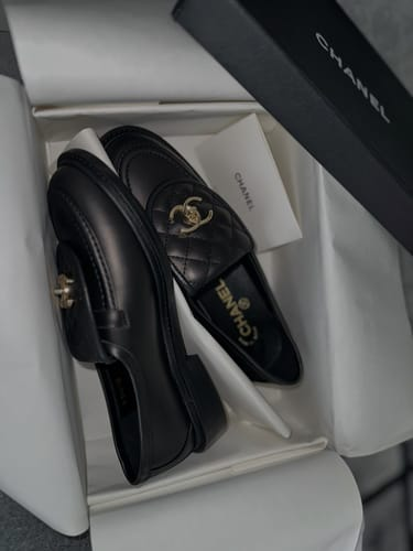 Coming from the House of Chanel, these loafers are a classy pair that will revamp your style! They are created using black leather, which shows quilted detail. A gold-tone CC turn-lock is attached to the vamps. They are finished with an easy slip-on style.Walk with confidence in these loafers.