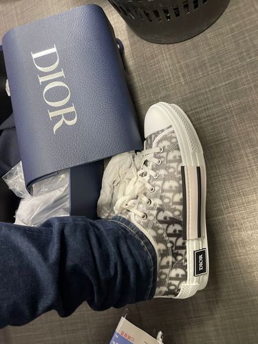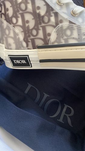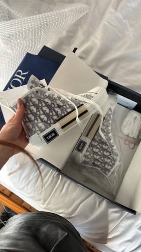 Designer Kim Jones’ first Dior Homme sneaker collection includes the Dior B23 High 'Dior Oblique' shoe which debuted at Paris Fashion Week in December 2018. This modern interpretation on a classic high-top trainer features the classic Dior Oblique pattern printed on its technical canvas upper. A sheer mesh overlay adds a couture-inspired touch, while a calfskin pull tab adds a luxe accent. Underfoot, a dual-tone rubber outsole adorned with a Dior-branded bumper logo complements this design