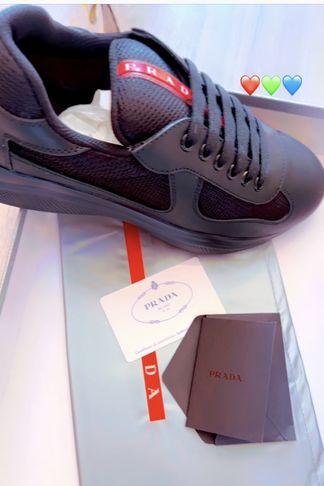 Flaunting a refined, multi-panel build, synonymous with the house’s minimal design sensibilities, these America's Cup sneakers from Prada come equipped with an ergonomic tooling system, mesh segments for added breathability and classic red-stripe branding over the tongue. Crafted in Italy, the pair also features a round toe, a lace-up front fastening, a branded insole and a flat rubber sole